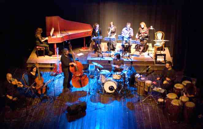 Come lo era negli Africa 70, anche nell’ensemble emiliano-romagnolo la direzione musicale è nelle mani, anzi nelle bacchette, del batterista, che pulsa un afrobeat elegante nella forma quanto incalzante nella sostanza. Contrabbasso, percussioni, pizzicati e bordoni sostengono un concerto sorprendente e ricco di assoli ispirati e alcuni colpi di scena, come le improvvise incursioni corali in “Mr Follow Follow” o un’ocarina che abbozza il tema di “Trouble Sleep Yanga Wake Am”.